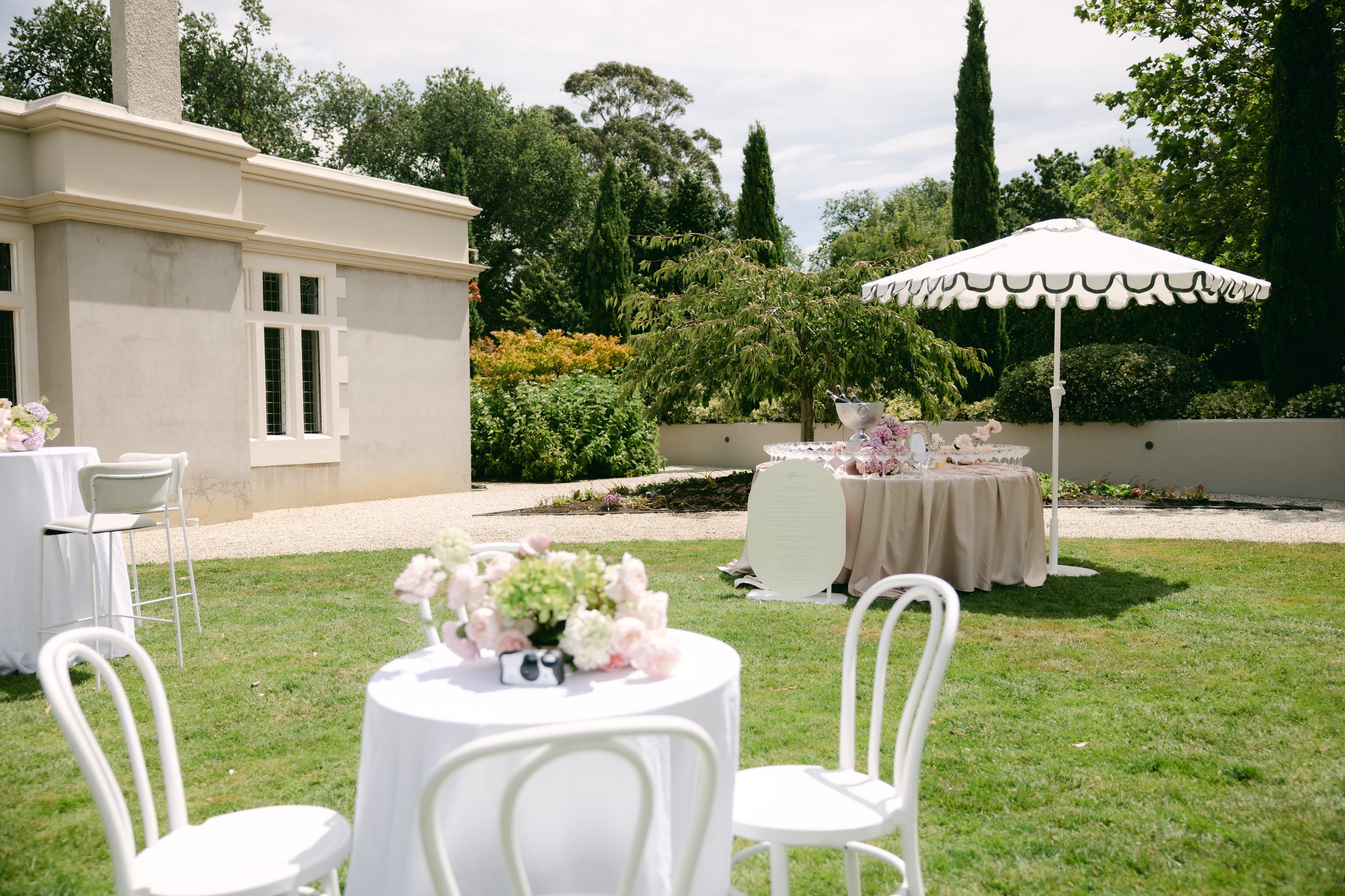 Marquee, styling assets, catering, bus transfers for guests from a central location